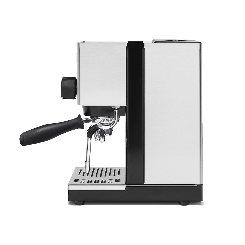 Brewing technologie Pozvěte do svého domova technologii přípravy kávy Rancilio; ergonomická páka, izolovaný bojler, nerezová parní tryska a ovládací kolečko páry, mřížka odkapové misky a mosazná spařovací jednotka.